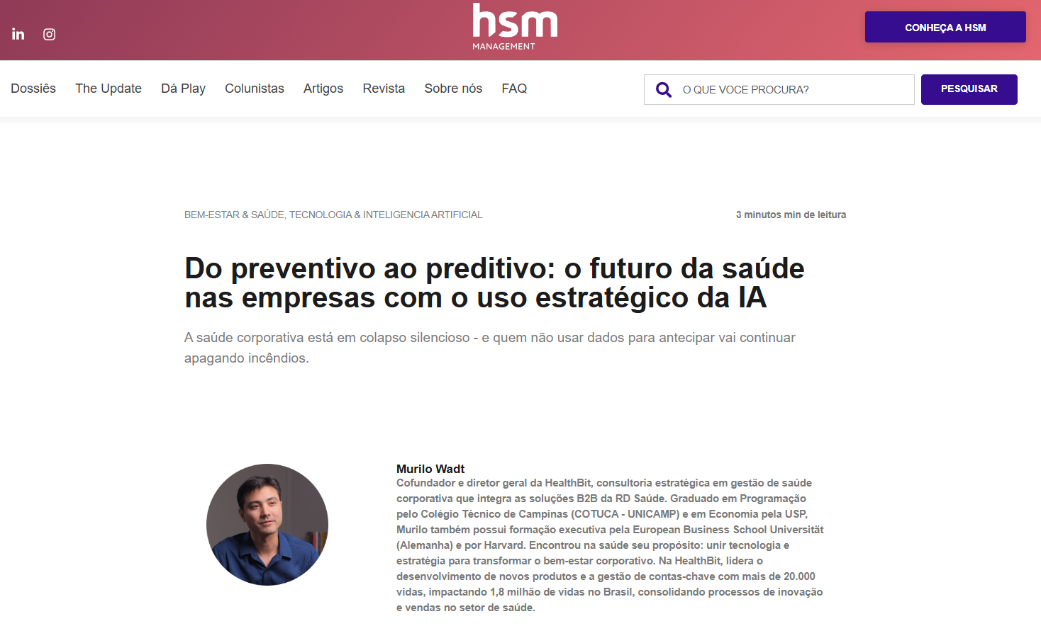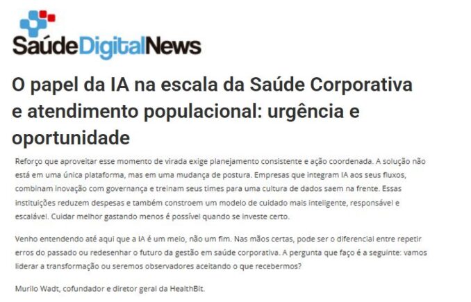 Confira o que estão falando da HealthBit na mídia